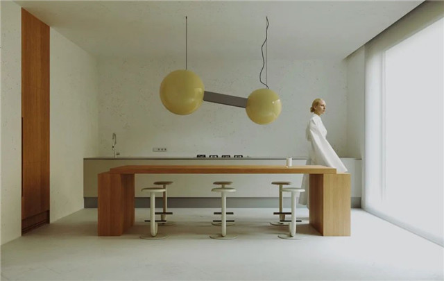 厨房多被设计开放式,并配备岛台和吊柜
